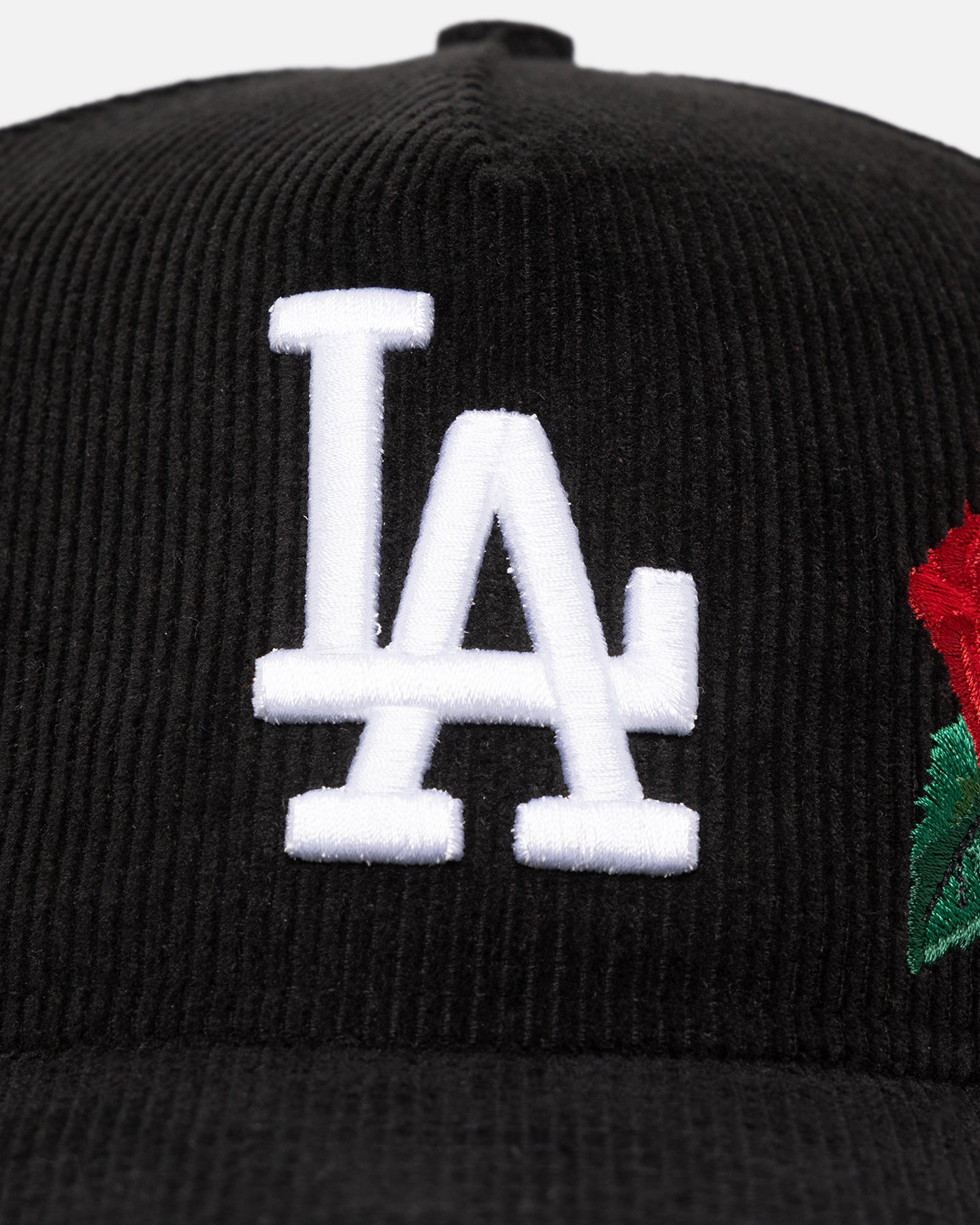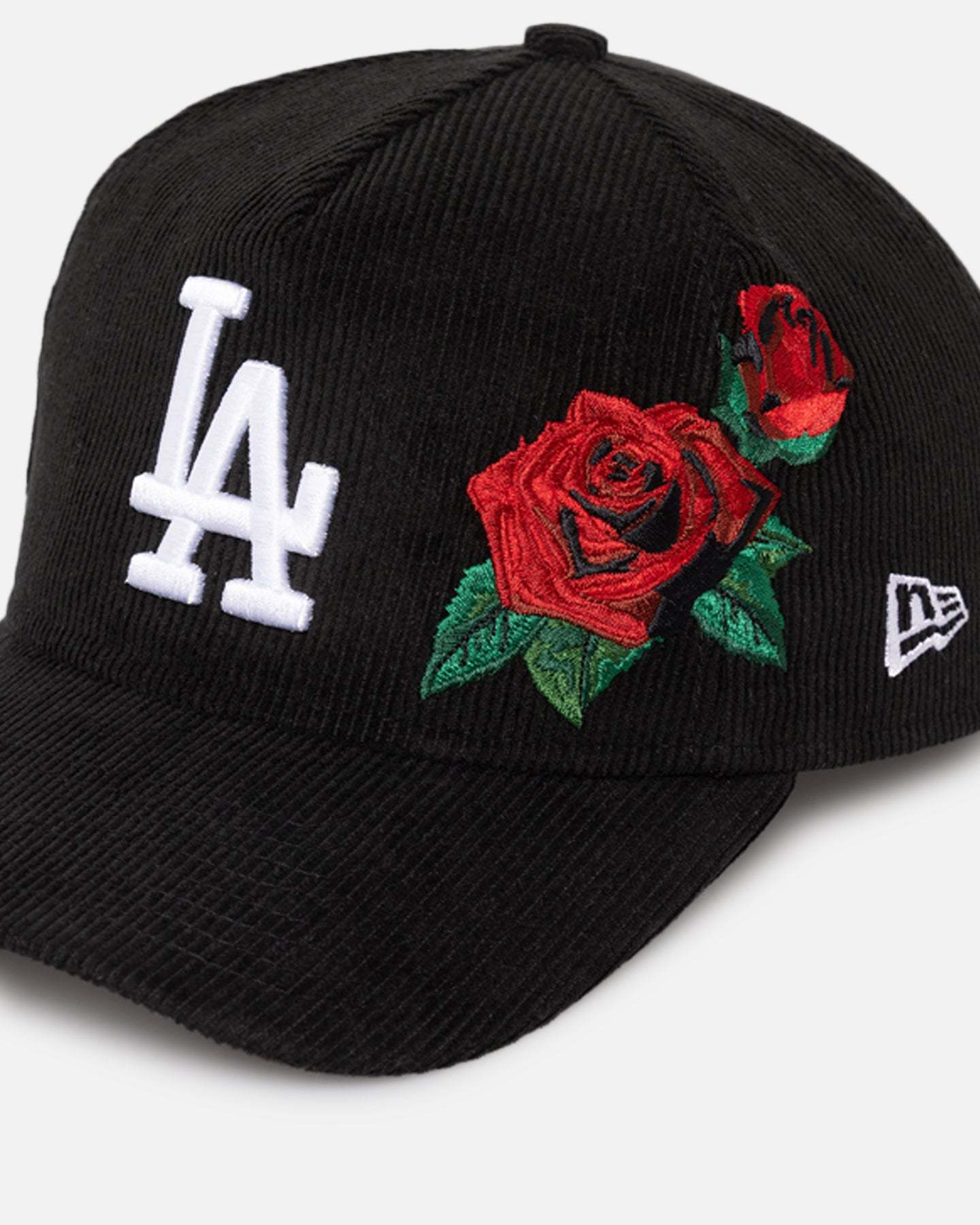 New Era Los Angeles Dodgers 'Corduroy Roses' Golfer Pre-Curved Snapback Black Corduroy/White